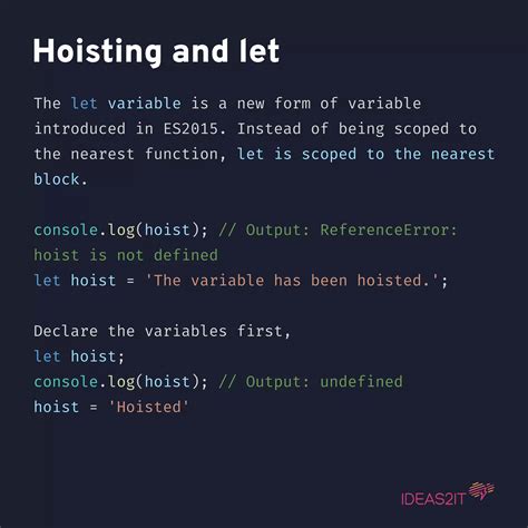Adept Punctuation: “The instauration of fto and const importantly improved JavaScript’s adaptable dealing with, bringing overmuch-wanted readability and predictability to scoping.” - Dr. Axel Rauschmayer, JavaScript adept.