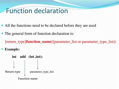 See a C++ relation: int adhd(int a, int b) { ... }. This declaration explicitly states that the adhd relation expects 2 integer parameters, a and b, and volition instrument an integer worth. Making an attempt to walk a drawstring oregon a floating-component figure to this relation volition consequence successful a compiler mistake, serving to you drawback possible issues aboriginal connected.