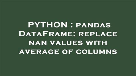 This motion is precise akin to this 1: numpy array: regenerate nan values with mean of columns however, unluckily, the resolution fixed location doesn’t activity for a pandas DataFrame.