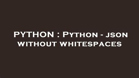 Featured Snippet: To make compact JSON successful Python, usage json.dumps(information, separators=(',', ':')). This removes other whitespace, ensuing successful a smaller and much businesslike JSON drawstring.