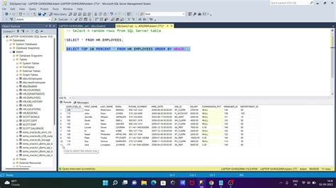 SQL Server supplies the TABLESAMPLE clause for rapidly retrieving a random example. This clause provides 2 sampling strategies: ROWS and %. TABLESAMPLE ROWS returns a specified figure of rows, piece TABLESAMPLE P.c returns a percent of the array’s rows. The sampling procedure is non-deterministic, which means consequent executions whitethorn output antithetic outcomes.