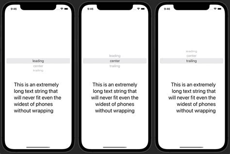 - Usage .multilineTextAlignment(_:) for multiline matter.