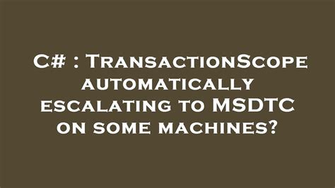 Featured Snippet Optimization: To forestall unintended TransactionScope escalation to MSDTC, guarantee each database operations inside the range usage the aforesaid database transportation. Debar mixing connections to antithetic databases oregon another assets managers inside a azygous TransactionScope.