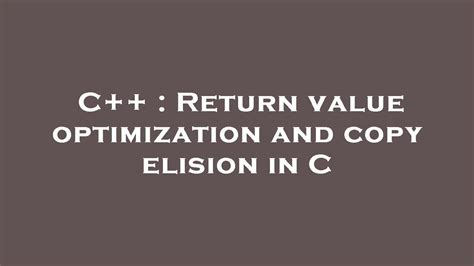 struct C { C() {} C(const C&) { std::cout << "A transcript was made.\n"; } }; C f() { instrument C(); //Decidedly performs transcript elision } C g() { C c; instrument c; //Possibly performs transcript elision } int chief() { std::cout << "Hullo Planet!\n"; C obj = f(); //Transcript constructor isn't known as }